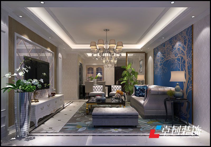 大富山莊85㎡后簡歐風格裝修設計電視背景墻效果圖,合肥裝修公司,合肥卓創(chuàng)裝飾,合肥裝飾公司