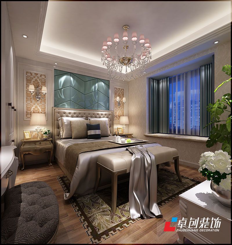 大富山莊85㎡后簡歐風格裝修設計主臥室效果圖,合肥裝修公司,合肥卓創(chuàng)裝飾,合肥裝飾公司