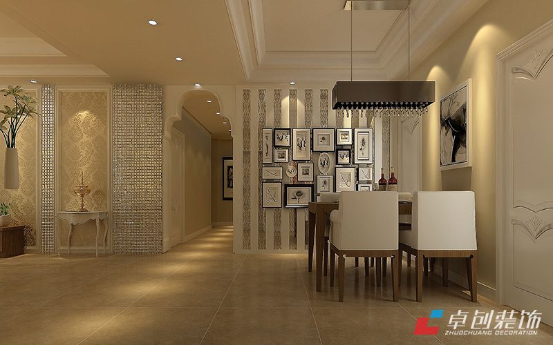餐廳效果圖:采用實木和皮藝作為餐桌和餐椅的結(jié)合,在簡單中透露一種大氣和典雅。