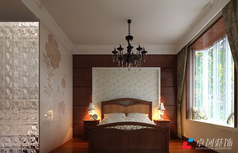 臥室效果圖:居室在色彩方面秉承了傳統(tǒng)古典風格的典雅和華貴,但與之不同的是加入了很多現(xiàn)代元素,呈現(xiàn)著時尚的特征。