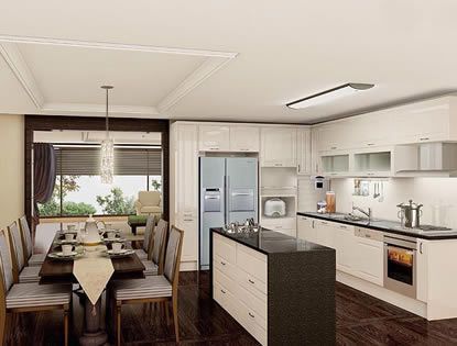 開放式廚房是現代簡約風格中常見到的一種廚房形式。一般是小戶型上會出現開放式的廚房裝飾。合肥裝潢公司對于顏色統一是非常的看中的。
