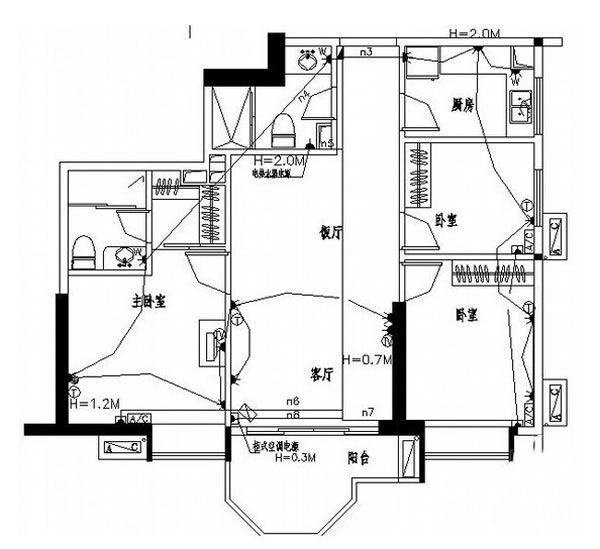 有線:客廳一各臥室一餐廳一主衛(wèi)一書房